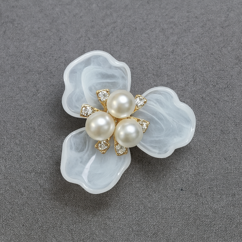 ✨ Made with marbled resin petals, lustrous pearls, and crystal accents in a silver-tone finish — designed to embody elegance veiled in mystery.