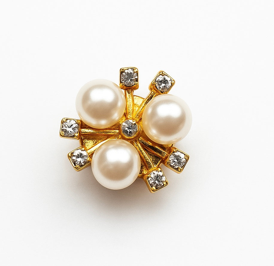✨ Crafted with decorative pearls and brilliant-cut crystals in a gold-tone finish — designed to merge timeless elegance with unapologetic modern power.