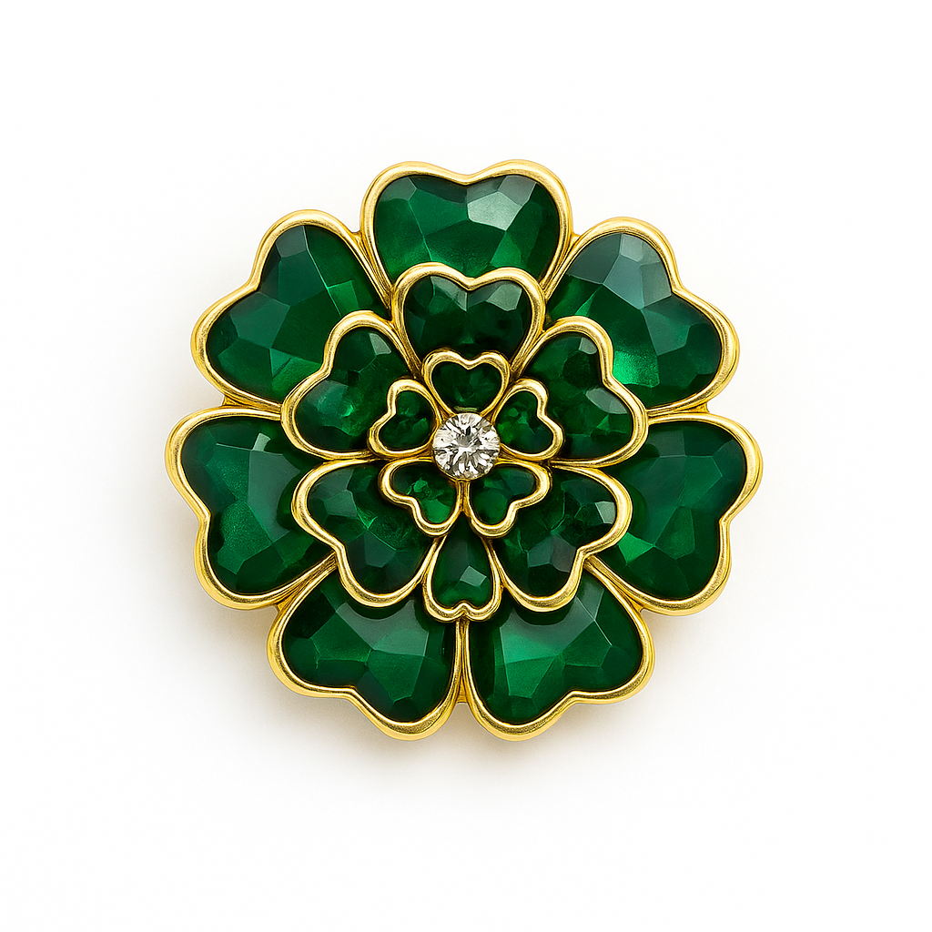 ✨ Made with emerald-green resin petals, radiant crystal, and gold-tone detailing — designed to embody fortune, prosperity, and timeless grace.