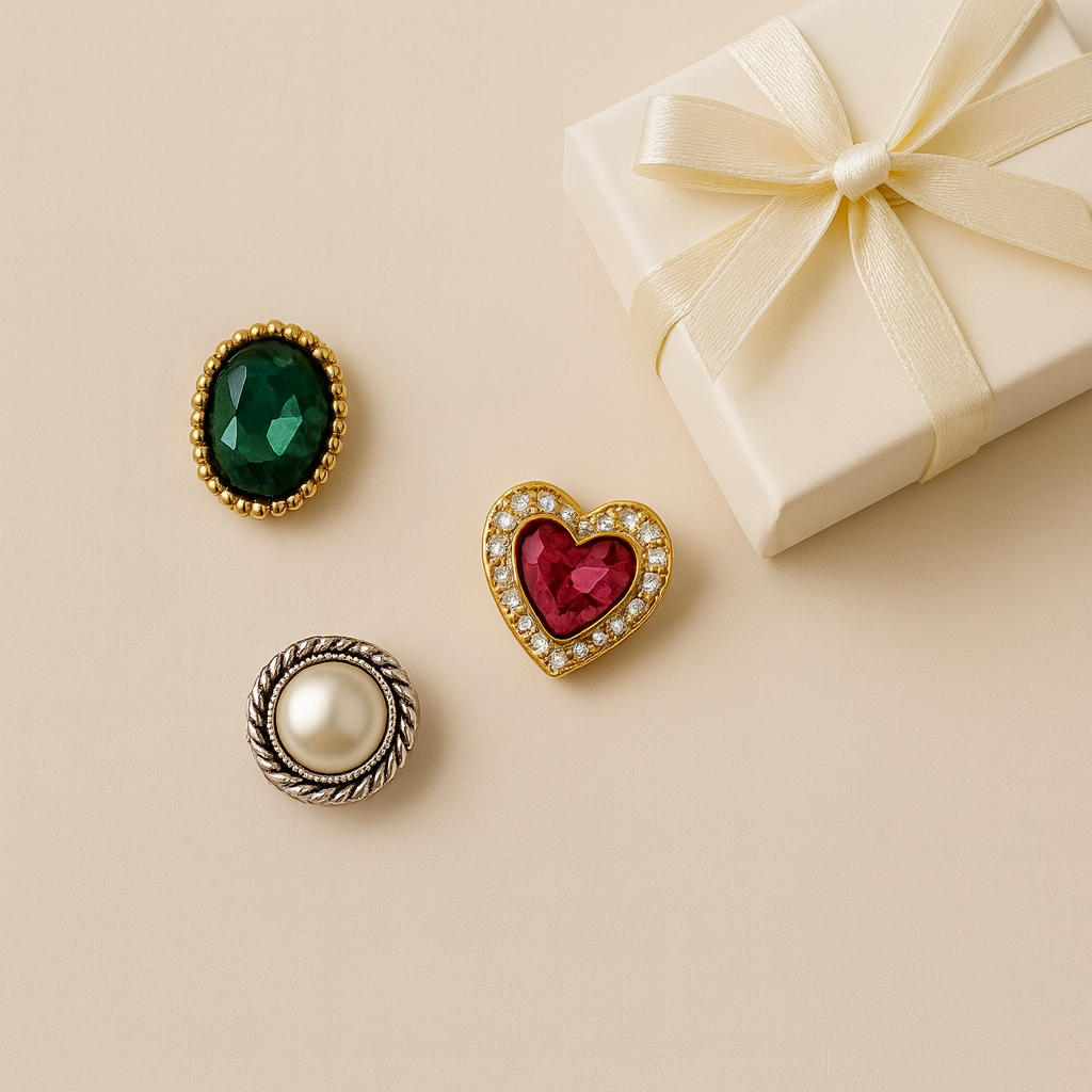💫 Includes: 3 complementary, intentionally mismatched button jewels (from different styles)