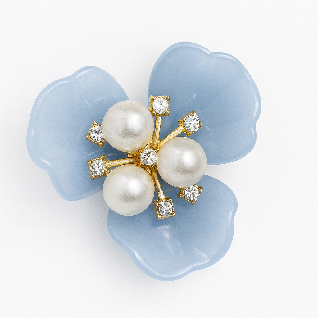 Some pieces speak softly, like secrets carried in the night air. Moonlight Whisper captures that quiet magic with translucent blue petals, radiant pearls, and crystals that glow as if kissed by starlight. It’s grace wrapped in mystery, designed for the woman who doesn’t need to raise her voice to be unforgettable.