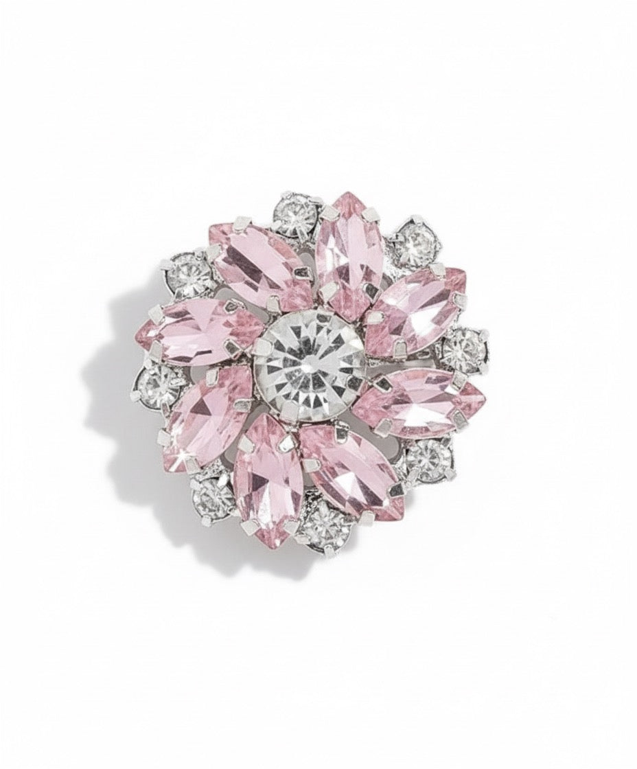 Delicate blush-pink crystals shimmer with a soft, effervescent glow, reminiscent of a glass of fine rosé kissed by sunlight. The clear and subtle tones make this button cover endlessly versatile, adding just the right touch of refined sparkle without overpowering your look. Feminine, graceful, and timeless — Sparkling Rosé is elegance poured into crystal form.